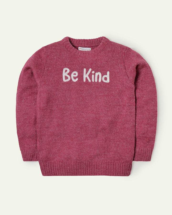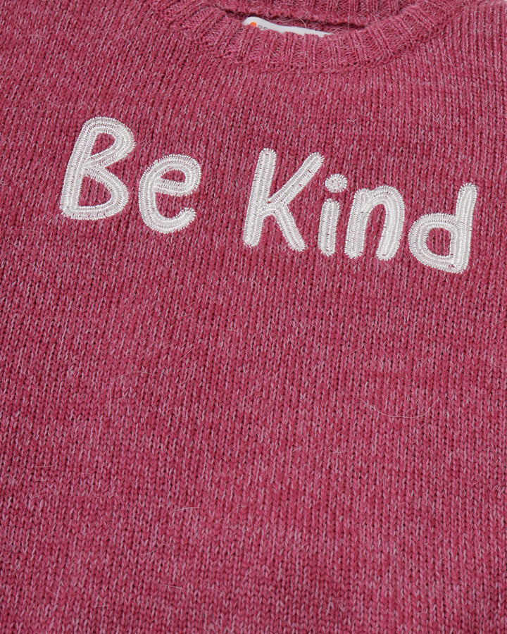 Simple yet meaningful, this maroon sweater stands out with its “Be Kind” embroidered detail. -Wool -Embroidered -Dry Clean