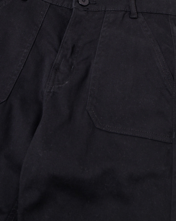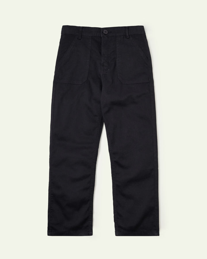 Easy straight fit trousers in black twill styled with oversized patch pockets for a trendy look. -Twill -Oversized Patch Pockets -Elastic Waist -Drawstrings -Machine Wash Cold