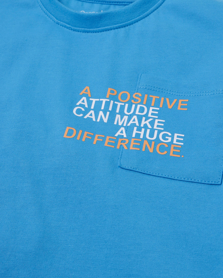 A bright blue T-shirt with a handy front patch pocket and a bold contrasting quote made for everyday confidence. -Cotton -Front Patch Pocket -Crew Neck -Machine Wash Cold