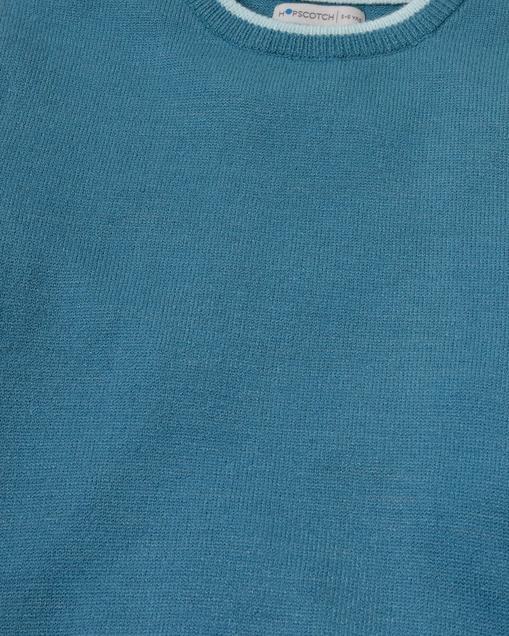 Perfect for layering or wearing solo, this blue crew neck sweater has got you covered all winter long. -Viscose/Nylon/Polyester -Metal Trim Badge -Tipping on Crew Neck -Dry Clean Recommended