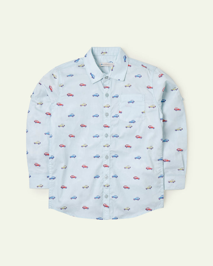 Designed for little car lovers, this light blue shirt comes with playful car motifs and matching DTM branded buttons. -Cotton -Front Placket Opening -DTM Branded Buttons -Front Patch Pocket -Machine Wash Cold