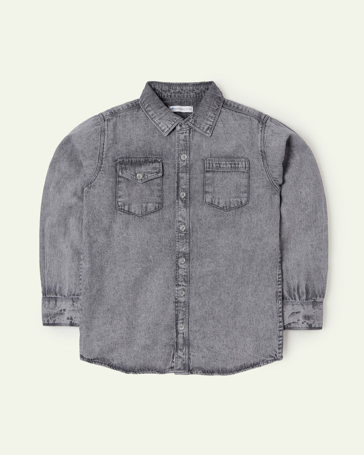 A versatile charcoal denim shirt perfect for layering or wearing on its own. -Denim -Front Placket Opening -Branded Buttons -Patch Pocket -Flap Pocket -Machine Wash Cold