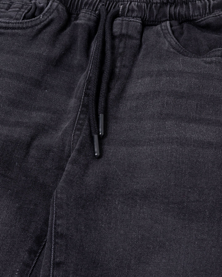 With their easy pull-on design and charcoal wash, these jeans are a must-have for laid-back days. -Denim -Scoop Pockets -Coin Pocket -Back Patch Pocket -Elastic Waist -Drawstrings -Pull Up -Straight Fit -Machine Wash Cold