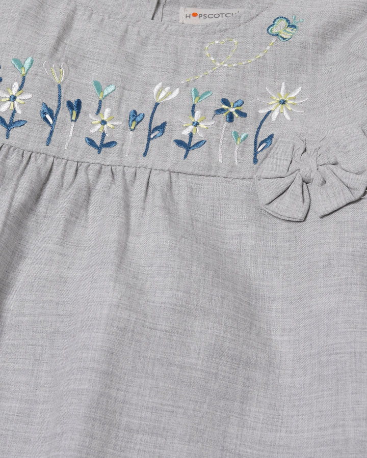 Delicate florals and a playful 3D bow make this embroidered peplum top a picture of girly grace. -Cotton -Embroidered -3D Bow -DTM Buttons -Machine Wash Cold