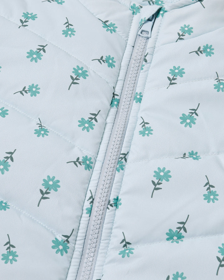 Floral prints and cozy puffs, this pastel hued jacket is a floral dream for those cold-winter days. -Polyester -Side Seam Pockets -Front Zipper Opening -Metal Trim Badge -DTM Lining -Dry Clean Only