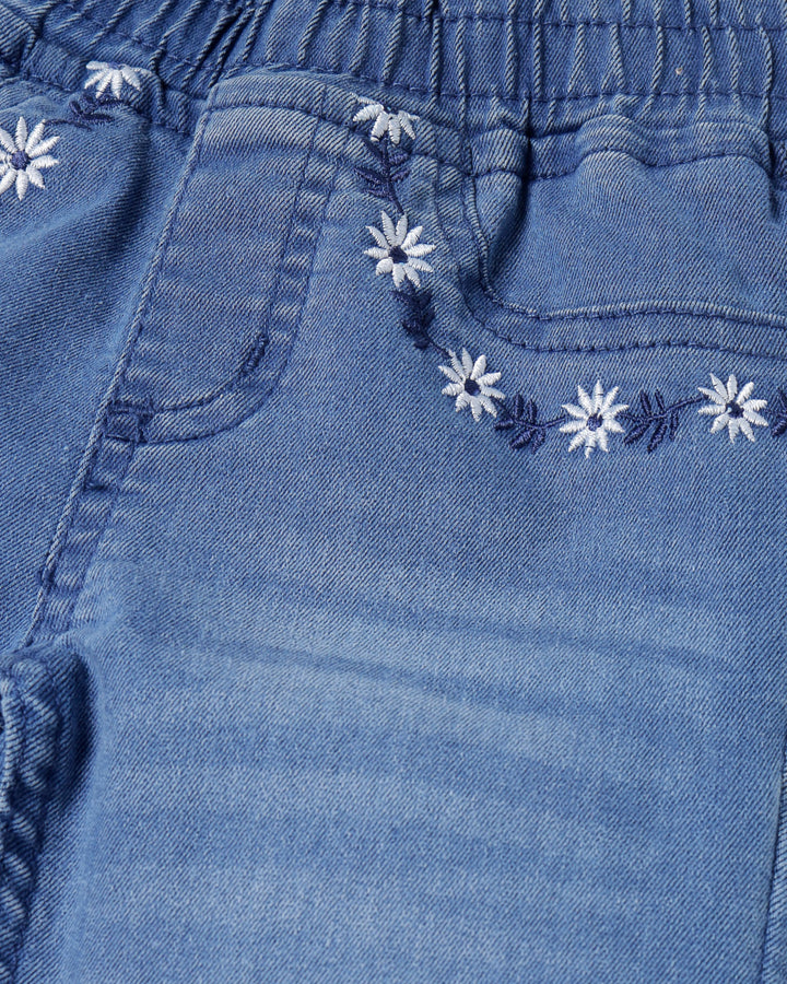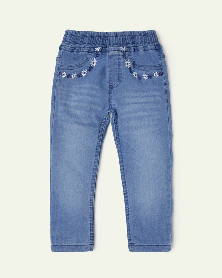 Flower Embroidered Mid Rise Jeggings