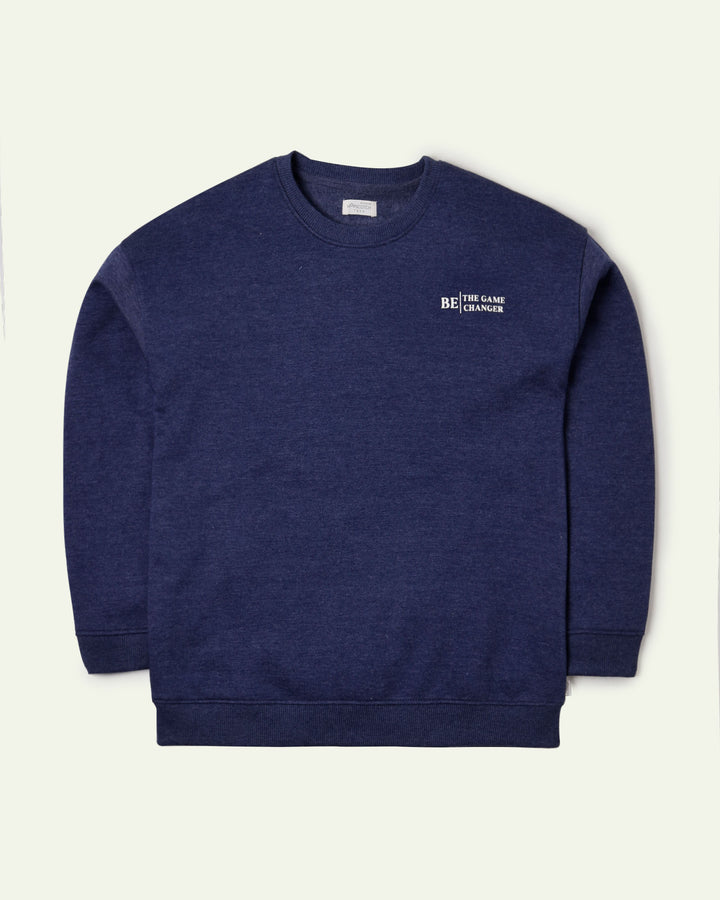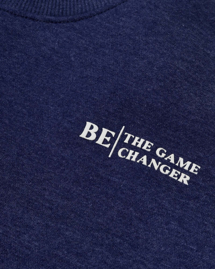 This heather blue Game Changer sweatshirt stands out with crisp HD print that brings attitude and energy. -Fleece -Ribbed Neckline -HD Print -Drop Shoulder -Oversized -Machine Wash Cold