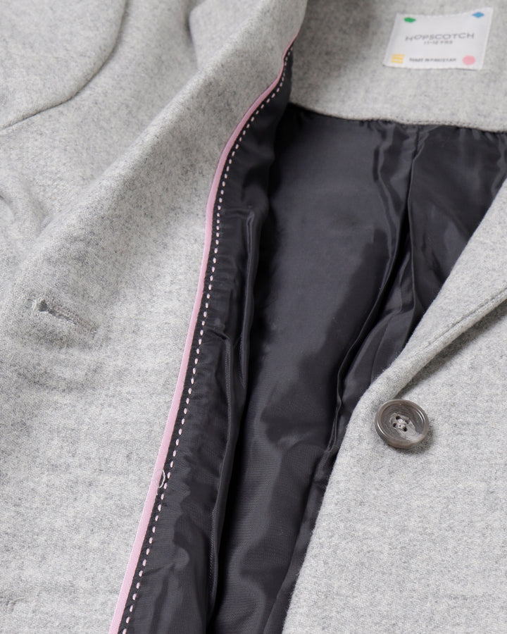 Tailored in warmth and style, this grey coat is the perfect layer for cool-weather days. -Wool -Oversized Patch Pockets -Textured Buttons -Contrast Piping & Thread Details -Solid Contrast Lining -Dry Clean Only