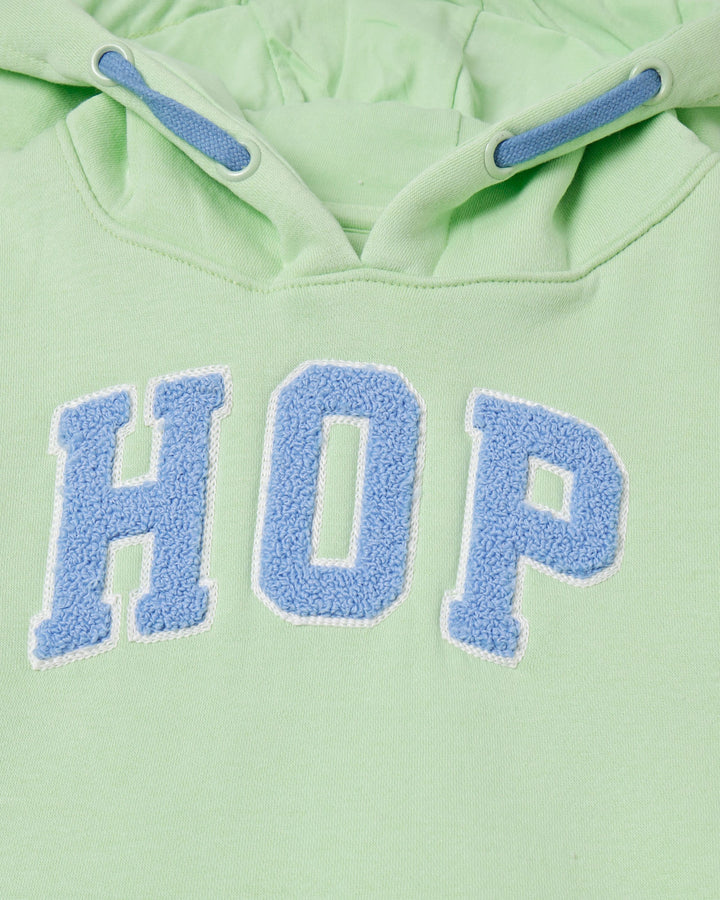 This green fleece sweatshirt with a bold ‘HOP’ towel applique adds a fun pop of texture and colour to his everyday winter wear. -Fleece -Towel Applique -Contrast Drawstrings -Kangaroo Pocket -Machine Wash Cold