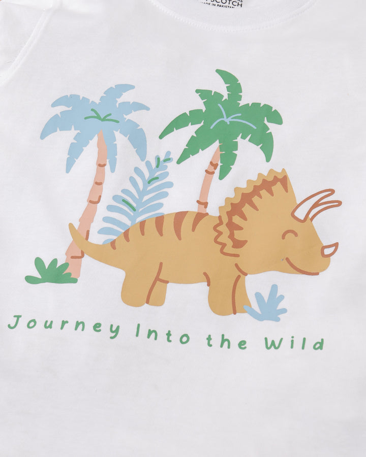 Double the fun with this dino-themed and striped cotton t-shirt set made for playful little explorers. -Pack of 2 -Cotton -Crew Necks -Machine Wash Cold