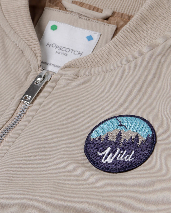 A cool khaki bomber jacket designed with a snug fit and soft lining to keep kids warm on every outing. -Twill -Zipper Opening -Welt Pockets -Ribbed Collar & Bottom Hem -Dry Clean Only