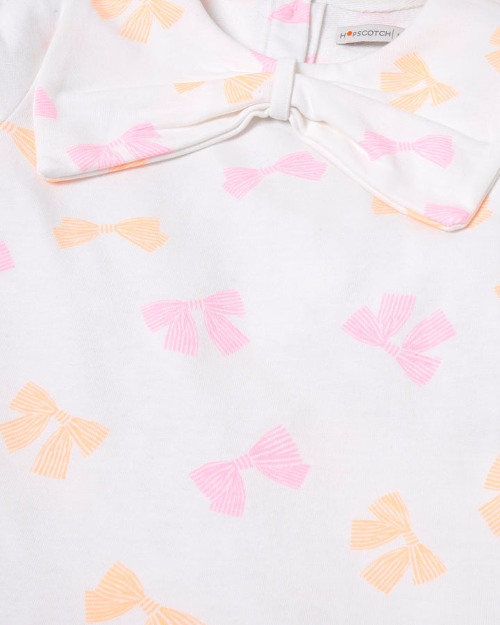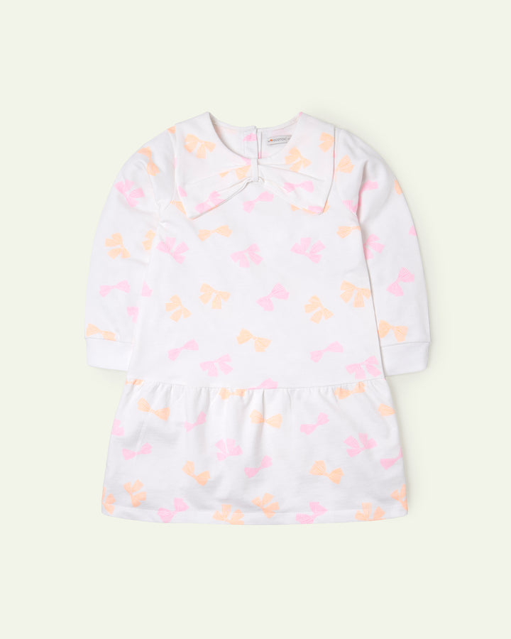Sweet from head to hem, this bow-printed dress with a statement collar brings vintage charm to her wardrobe. -Terry -Back Placket Neck Opening -DTM Branded Buttons -Bow Collar -Low Waist -Machine Wash Cold