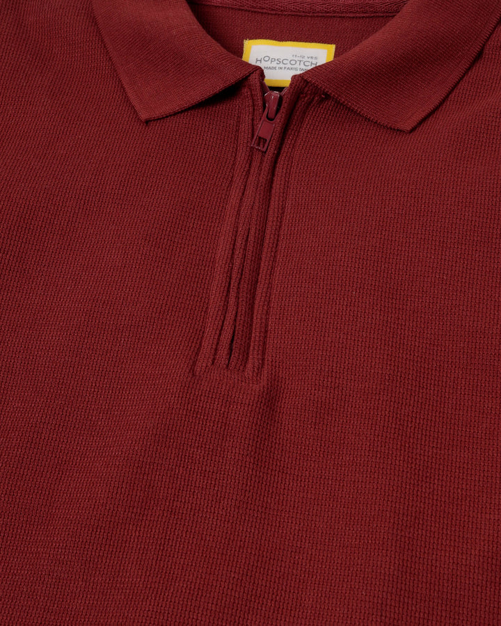 Maroon Textured Half Zip Polo