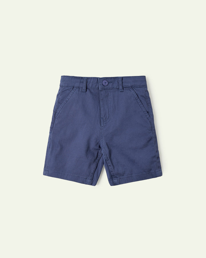 These navy-blue twill chino shorts are specially designed for fun summertime adventures. -Twill -Cross Pockets -Back Welt Pocket -Leather PU Patch -Branded Button -Machine Wash Cold