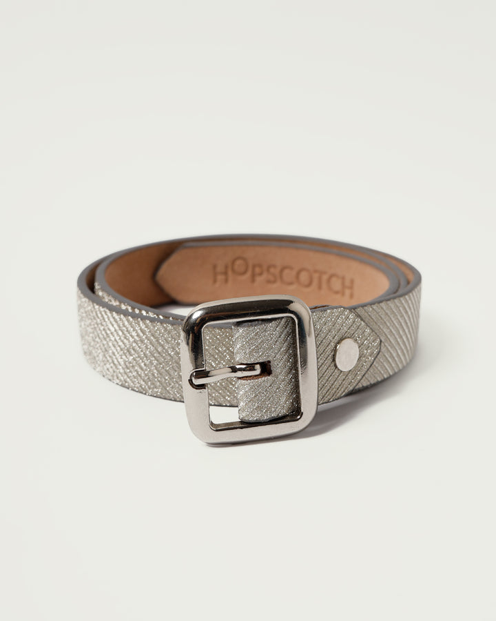 Add a sparkle to her outfit with this silver shimmery textured belt finished with a sleek buckle.