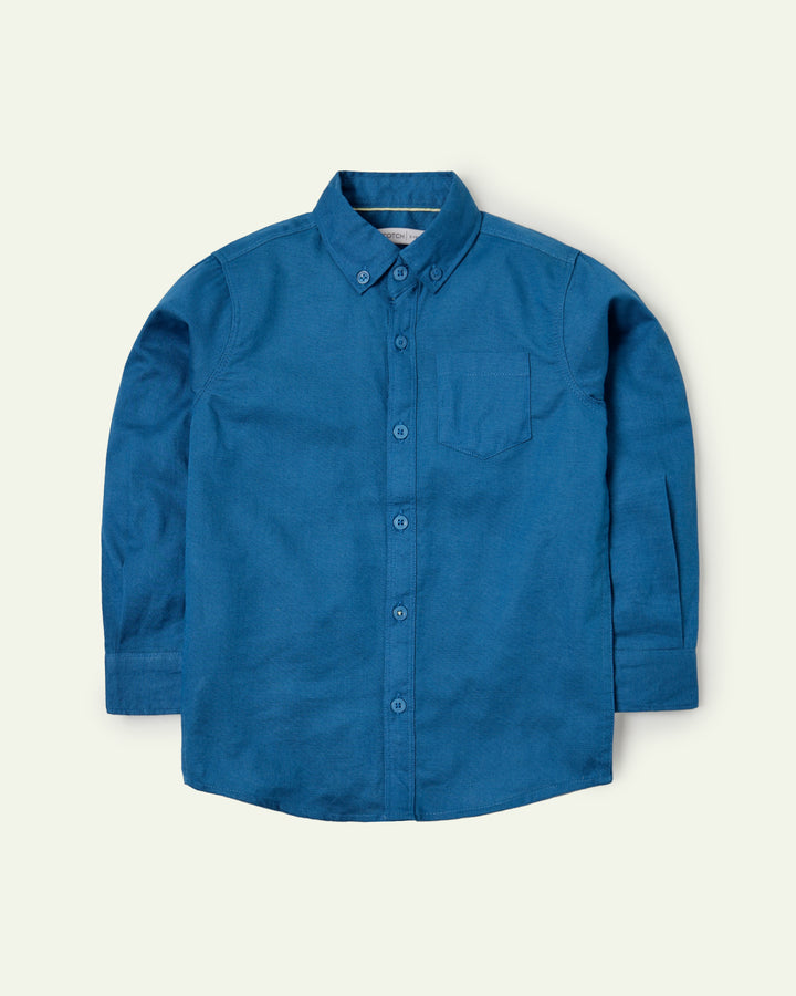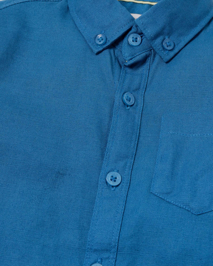 Brighten up their wardrobe with this solid teal twill shirt featuring bold yellow stitch accents. -Twill -Button Down Collar -Front Placket Opening -DTM Branded Buttons -Front Patch Pocket -Contrast Yellow Piping -Regular Fit -Machine Wash Cold