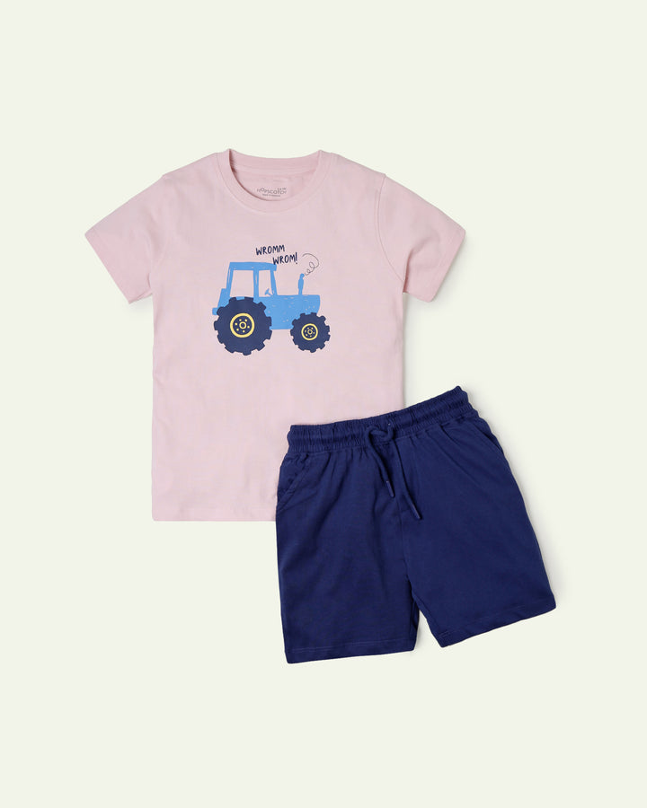 From backyard play to weekend outings, this cheerful tractor-themed t-shirt and shorts set is made for action-packed fun days. -Cotton -T-shirt: Crew Neck, Regular Fit -Shorts: Elastic Waist, Drawstrings, Cross Pockets, Machine Wash Cold