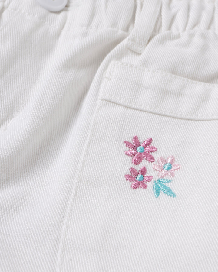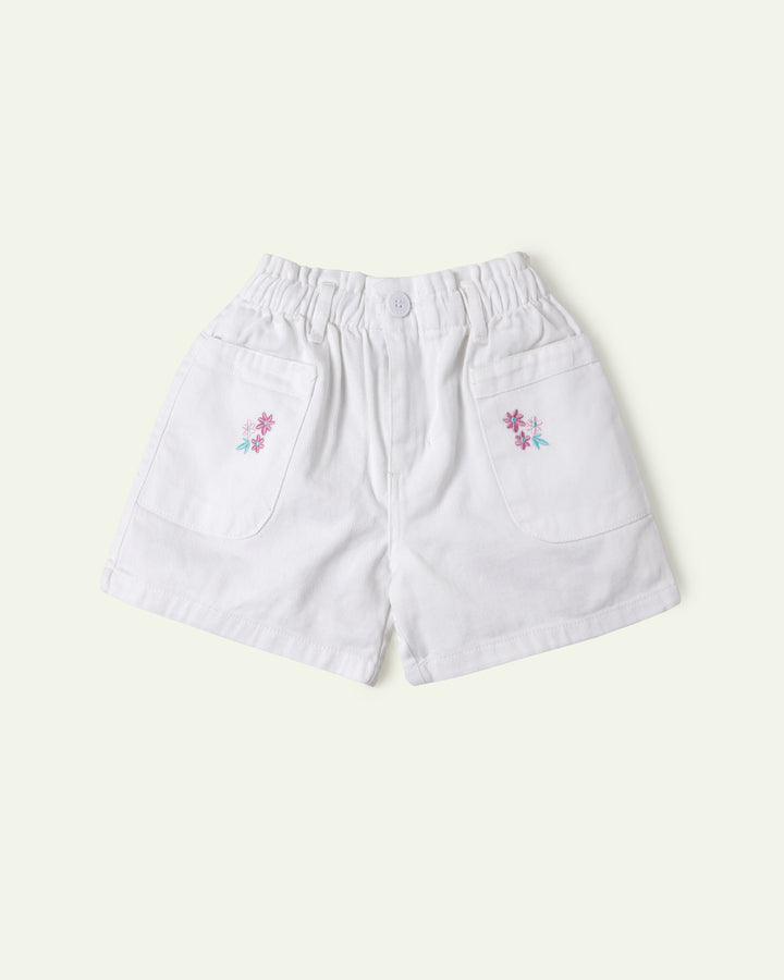 White Floral Embroidered Shorts