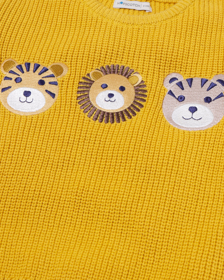 Let your cub stay warm and wild in this yellow sweater with a friendly lion embroidered up front. -Acrylic -Embroidered -Crew Neck -Machine Wash Cold
